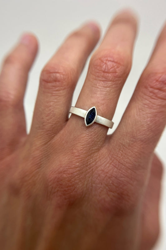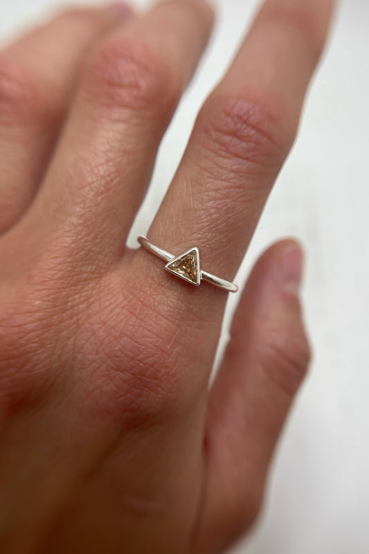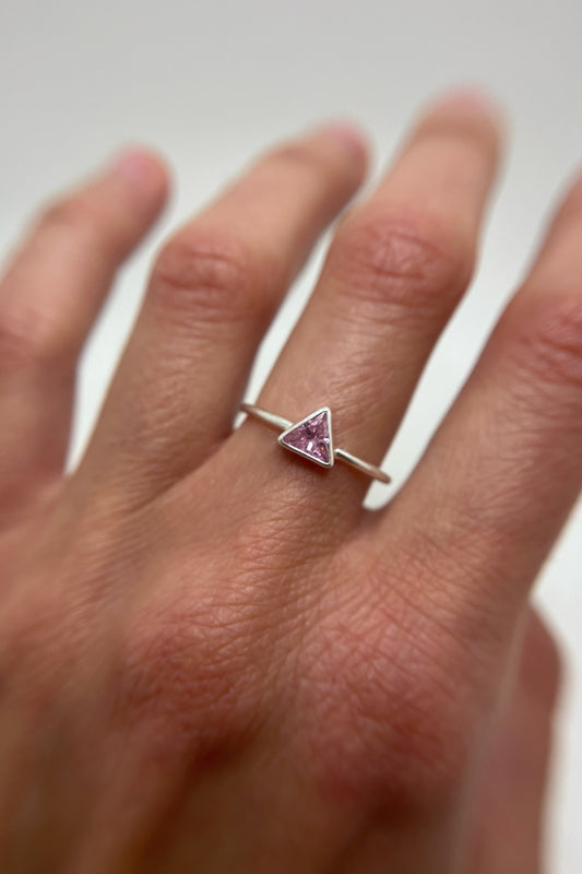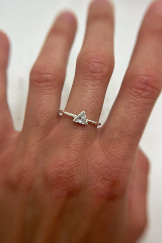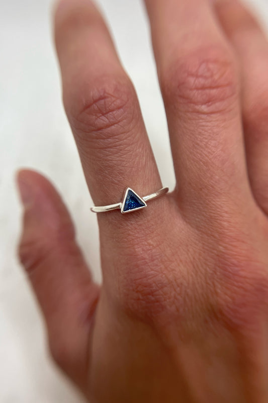 tiny triangle ring / blue cubic zirconia / size 8.5